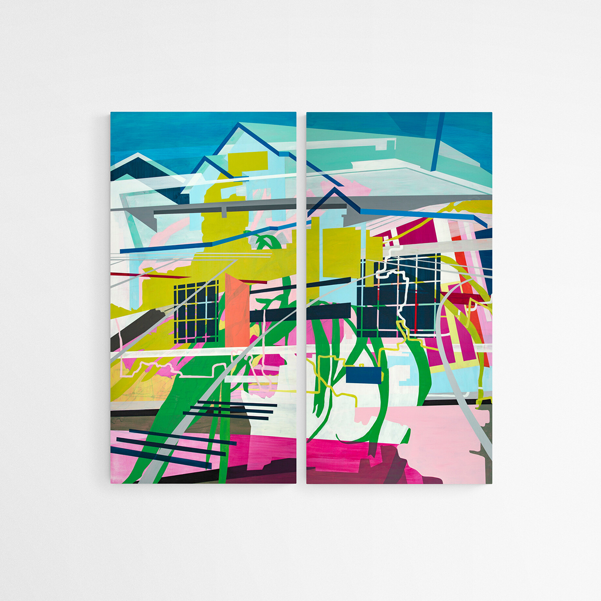 this is a diptych of two separate panels each 30″w x 60″h; display right next to each other or with a slight gap between the panels